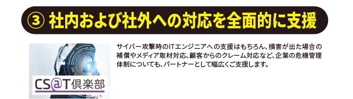 セキュリティインシデントを起こさないために、また、インシデントが発生しても、迅速に対応できるようにするために。経営者のみなさまは、いますぐ、以下の3つのインシデント対策に取りかかってください。