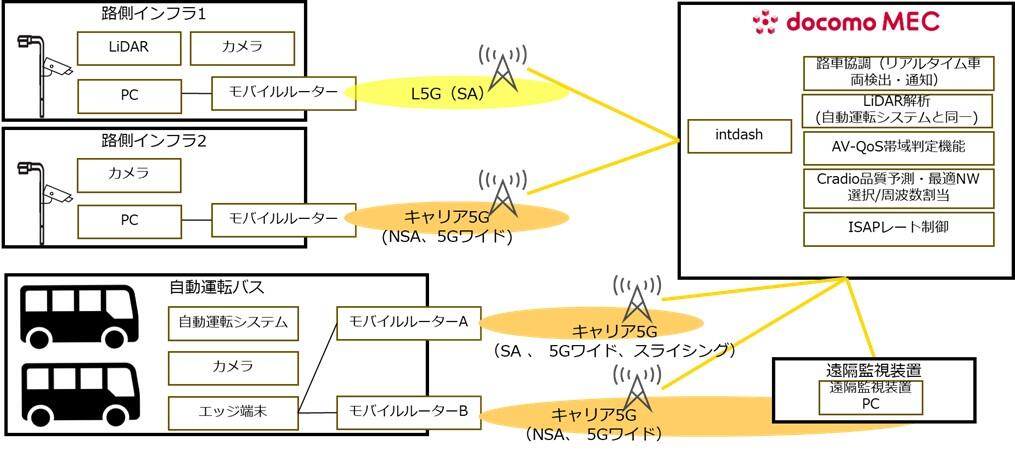 こうした背景を踏まえ、NTTドコモビジネスおよび関係各社は、通信制御(無線リソース最適化)と路車協調(ローカル5G・路側インフラ連携)を融合し、「都市部における混雑発生地域や見通しの悪い狭あい道路でも安定して運行できる自動運転レベル4」の社会実装を目的とした検証を行います。