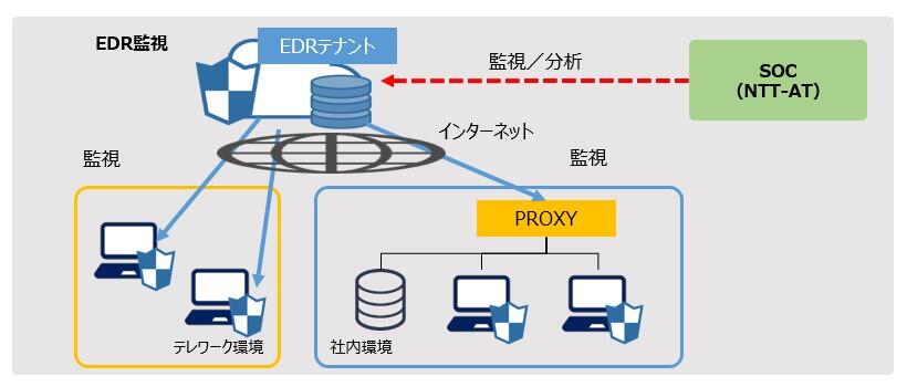 EDRはインターネットのクラウド上のEDRのテナントにSOCが直接、ログインして、監視分析をします。