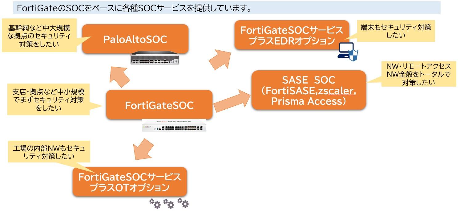 ICT24-SOCでは、FortiGateなど、各種の監視対象機器に対応して、各種のSOCメニュを用意しております。