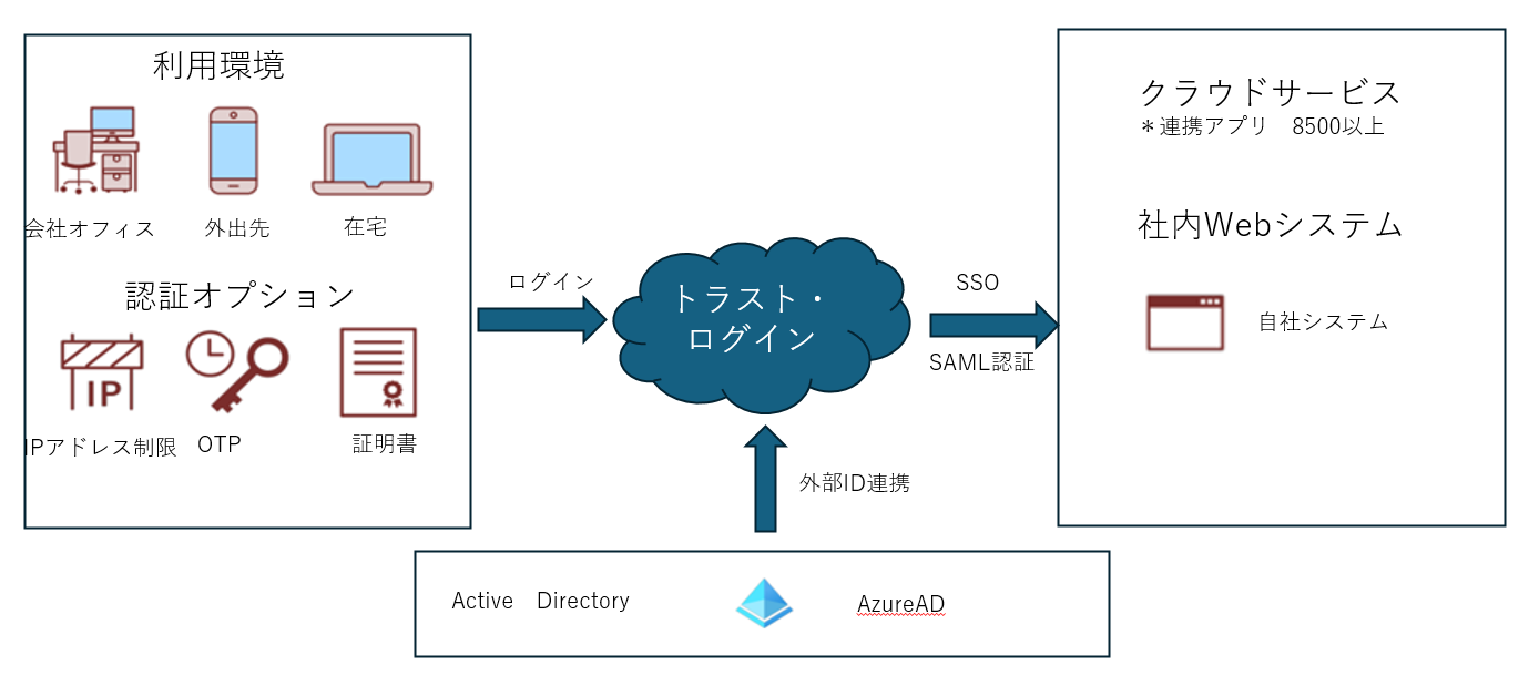 そこで、シングルサインオンによる一元管理と安全な外部アクセス環境の構築を目的に導入しました。
